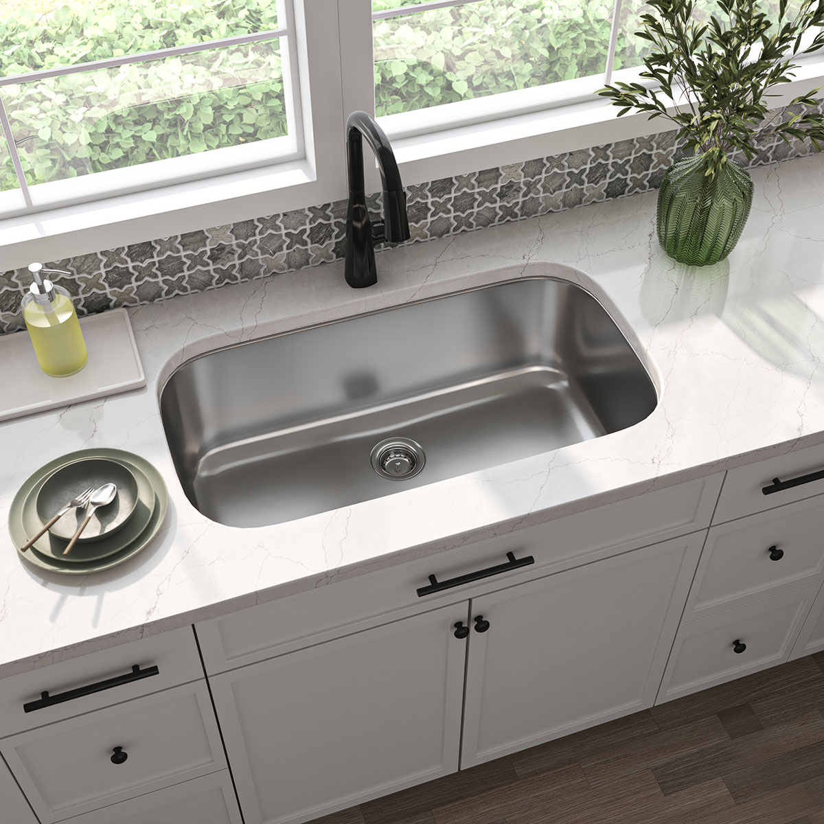 Elevate your kitchen or entertainment area with this sophisticated 32″ x 18″ Single Cutout Sink. Crafted from durable 18-gauge stainless steel, this undermount sink boasts an elongated design with interior rounded corners, making it ideal for islands, bar areas, laundries, and outdoor kitchens. The 9″ deep basin provides ample space for various tasks, while the […]