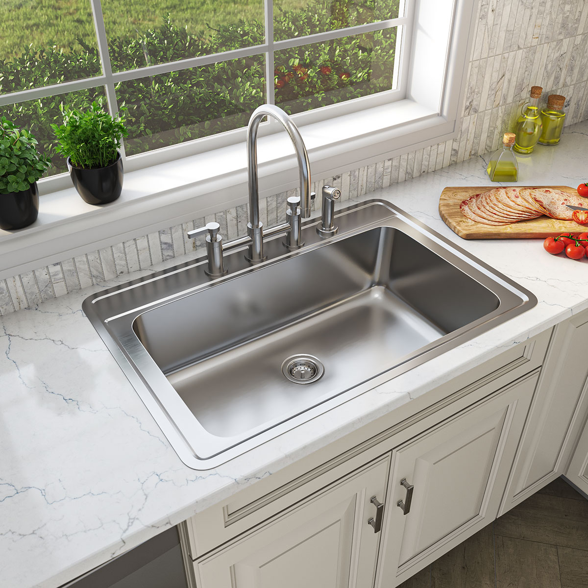 Revitalize your kitchen space with our elegant 33″ x 22″ Single Bowl Sink, expertly crafted from durable 18-gauge stainless steel. Designed with an elongated form for a modern touch, this overmount sink is perfect for islands, bar areas, laundries, and outdoor kitchens. The 9″ deep basin provides ample room for various tasks, and the interior […]