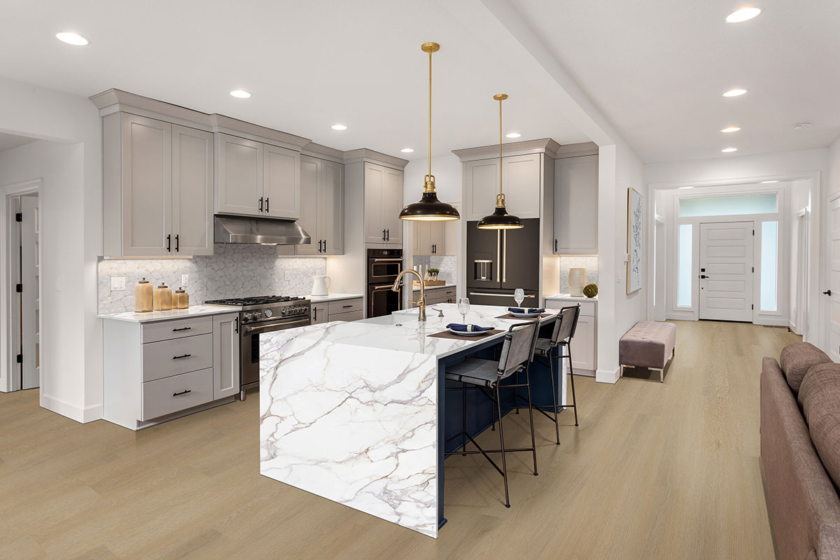 Calacatta Fiorella, made in Italy, features a warm white background with bold gray and gold tones in varying intensities, creating a striking design that can be book-matched for a seamless, sophisticated look. The silk finish offers a soft, refined touch while minimizing reflectivity. Measuring 63” x 126” and 12mm thick, this durable porcelain slab resists […]