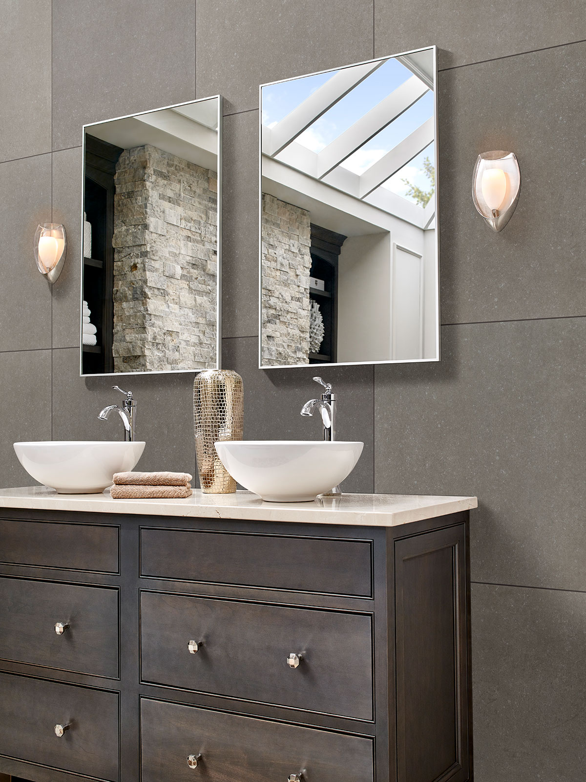 Concrete Porcelain Tile from the Dimensions collection features a dark gray, reminiscent of poured concrete. The sleek and sophisticated look of concrete, with the ease of care of porcelain, these large format tiles are sleek and contemporary, and ideal for a wide array of design projects including floors, accent walls, backsplashes, and countertops. Check Inventory […]