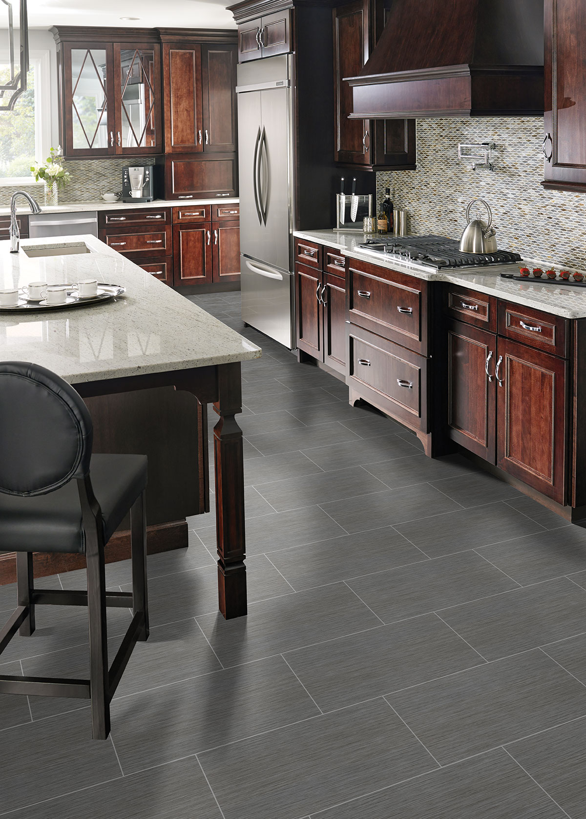 Graphite Porcelain Tile from our Focus collection features mid-tone grays and tonal stripes that are perfect for both contemporary and modern spaces. Offered in a matte finish, 12×24 large format tiles are available as well as 2×2 and 3×18 bull nose tiles allowing for creative design installations. Use these modern tiles for countertops, floors, backsplashes, […]