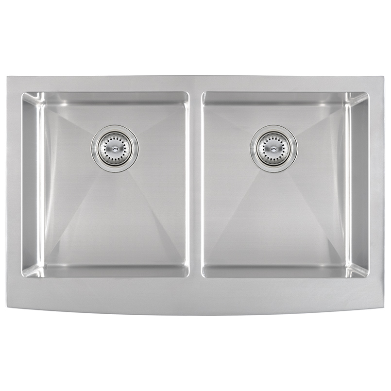 This handcrafted double basin undermount sink features a beautiful curved apron for that sought-after finished look. Constructed with 16-gauge stainless steel for reliable durability, it offers two equally sized deep basins (10β each). Big family dinners? No problem. This hardworking sink can handle oversized cookware like stockpots, slow cookers, and baking sheets. An ideal choice […]