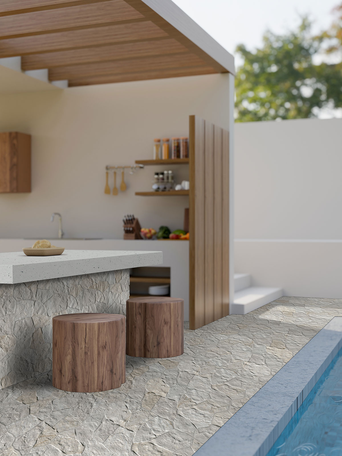 Earthy elegance meets modern durability with Neptune Micas, a 16” x 24” porcelain tile that embodies the timeless appeal of flagstone. Designed to mimic natural stone clefting, its soft limestone-inspired surface blends warm hues of white, ivory, and cream for a refined yet organic look. Whether enhancing an accent wall, fireplace surround, or patio floor, […]