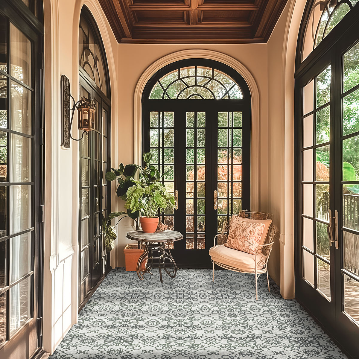 Enhance your living spaces with the exquisite Trastevere Porcelain Floor and Wall Tile. This 8” x 8” square tile boasts an encaustic design that exudes timeless charm. When grouped in fours, it forms a captivating medallion motif, adding an artistic flair to any room. The mosaic patterns, blending warm white tones with bold black designs, […]