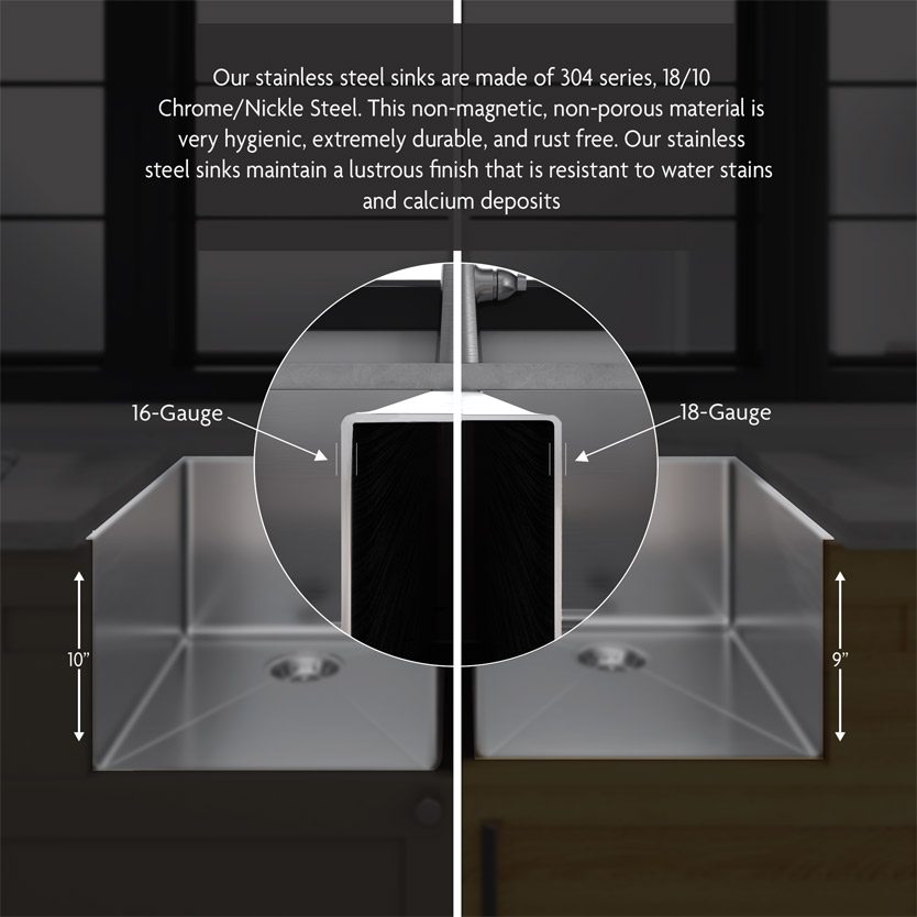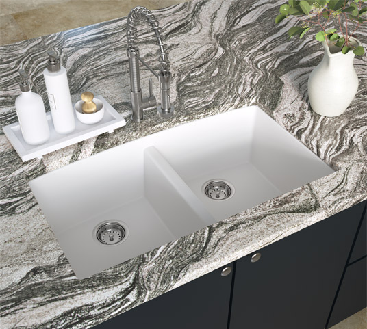 We provides a selection of both stainless steel, quartz composite, and ceramic sink options that provide customers with the right sink to finish off their kitchen and vanity projects. Choose from single bowl, double bowl, and farmhouse sink options.