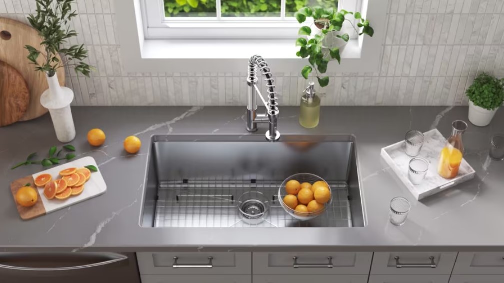 Gem Citfy Countertops o Single Bowl Kitchen Sinks series, including versatile utility and bar sinks, comes in various sizes and depths for all kitchen designs. Crafted from tough 18-gauge and 20-gauge stainless steel, these sinks excel in handling large cookware with ease. Their undermount setup not only enhances the kitchen’s aesthetic but also promises easy upkeep and enduring quality.