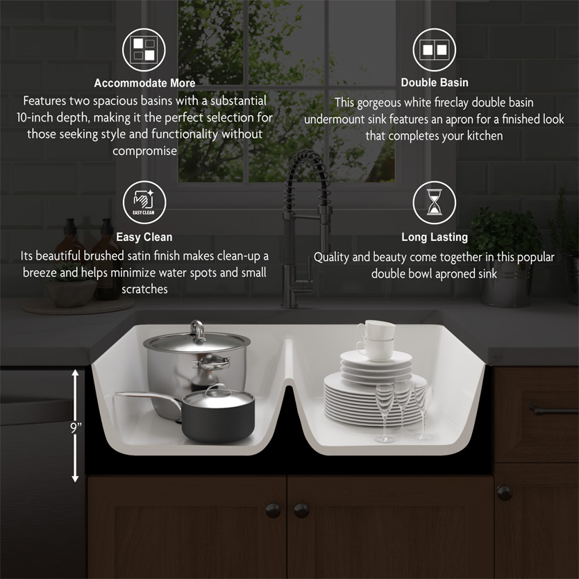 Gem City Countertops of Farmhouse Apron Kitchen Sinks in pristine white fireclay offer a timeless design, available in both double and single bowl configurations to complement any kitchen style. These sinks feature a generous depth of 8.5 inches, providing ample space for washing and soaking large cookware, and the classic apron front design adds a touch of rustic charm.