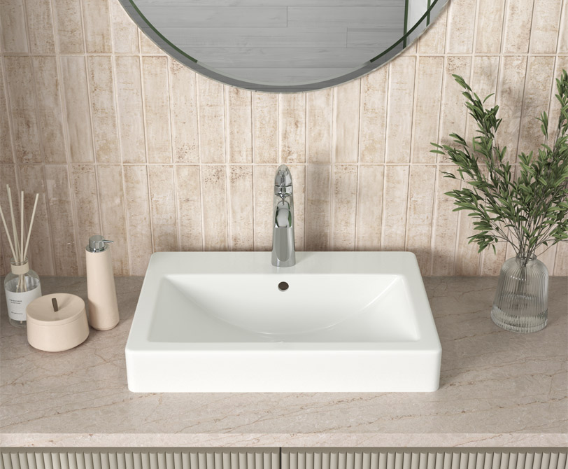 Our Vanity Sinks include undermount designs in white and bisque, available in rectangular and an overmount white rectangle model for a classic drop-in installation. With basin depths from 7 3/8″ to 8 1/8″, these sinks cater to various functional needs while providing the choice of streamlined flat basins or traditional curved ones.